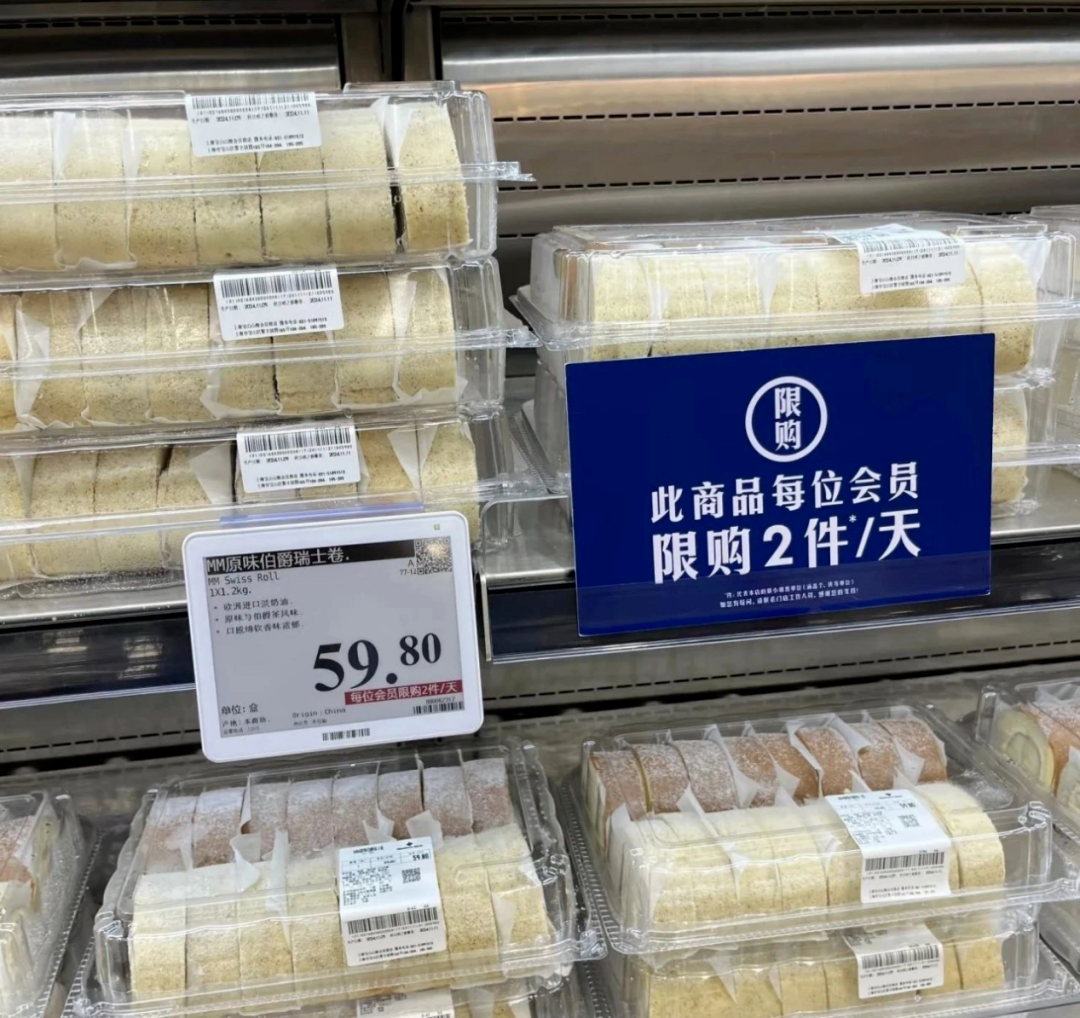 據(jù)了解,山姆的主要目標(biāo)客戶是年收入20萬以上的中產(chǎn)家庭,消費降級≠生活品質(zhì)降級,因而,山姆通過多種方式打造產(chǎn)品的差異化和性價比,嚴(yán)苛選品與逆向研發(fā),采用「寬SPU、窄SKU」策略,如尋找一些獨家供應(yīng)產(chǎn)品,追求差異化創(chuàng)新和更高品質(zhì),如牛奶為山姆專供;若需求產(chǎn)品沒有清晰行業(yè)標(biāo)準(zhǔn)或者外部供應(yīng)鏈利潤率過高,山姆會選擇開發(fā)自有品牌。在此策略之下,山姆通過更優(yōu)的品質(zhì),大包裝高性價比打造出眾多爆款,比如瑞士卷、青檸汁、烤雞、麻薯等。